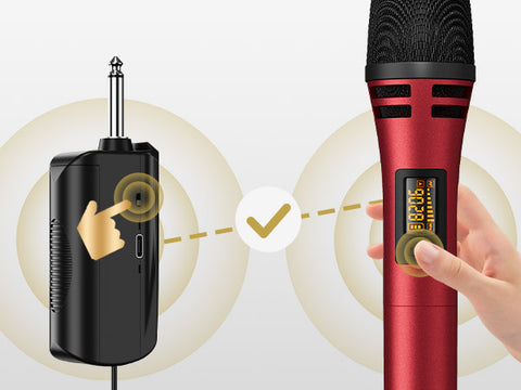 Plug & Play: Turn on the receiver for automatic mic pairing and connect easily to your playback device for use.