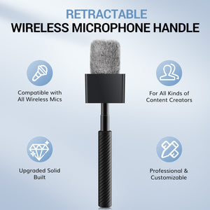 TONOR Wireless Microphone Handle Compatible with DJI RODE, Windshield for Vlog, Reporting, Interview, TP40